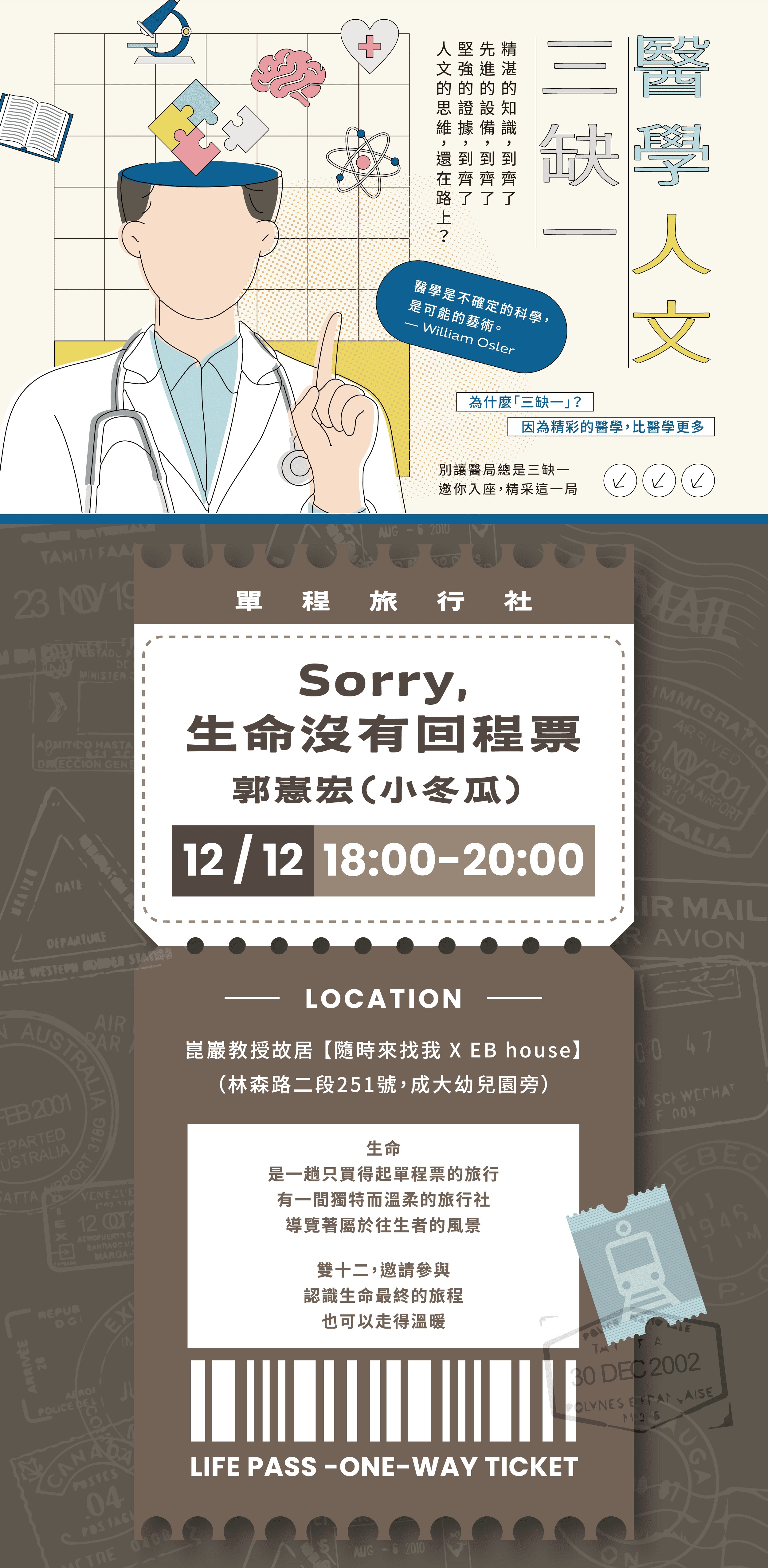 [活動報名]【醫聲沙龍】〈Sorry,生命沒有回程票〉— 金鐘獎得主小冬瓜生命對談 2025.12.12 18:00